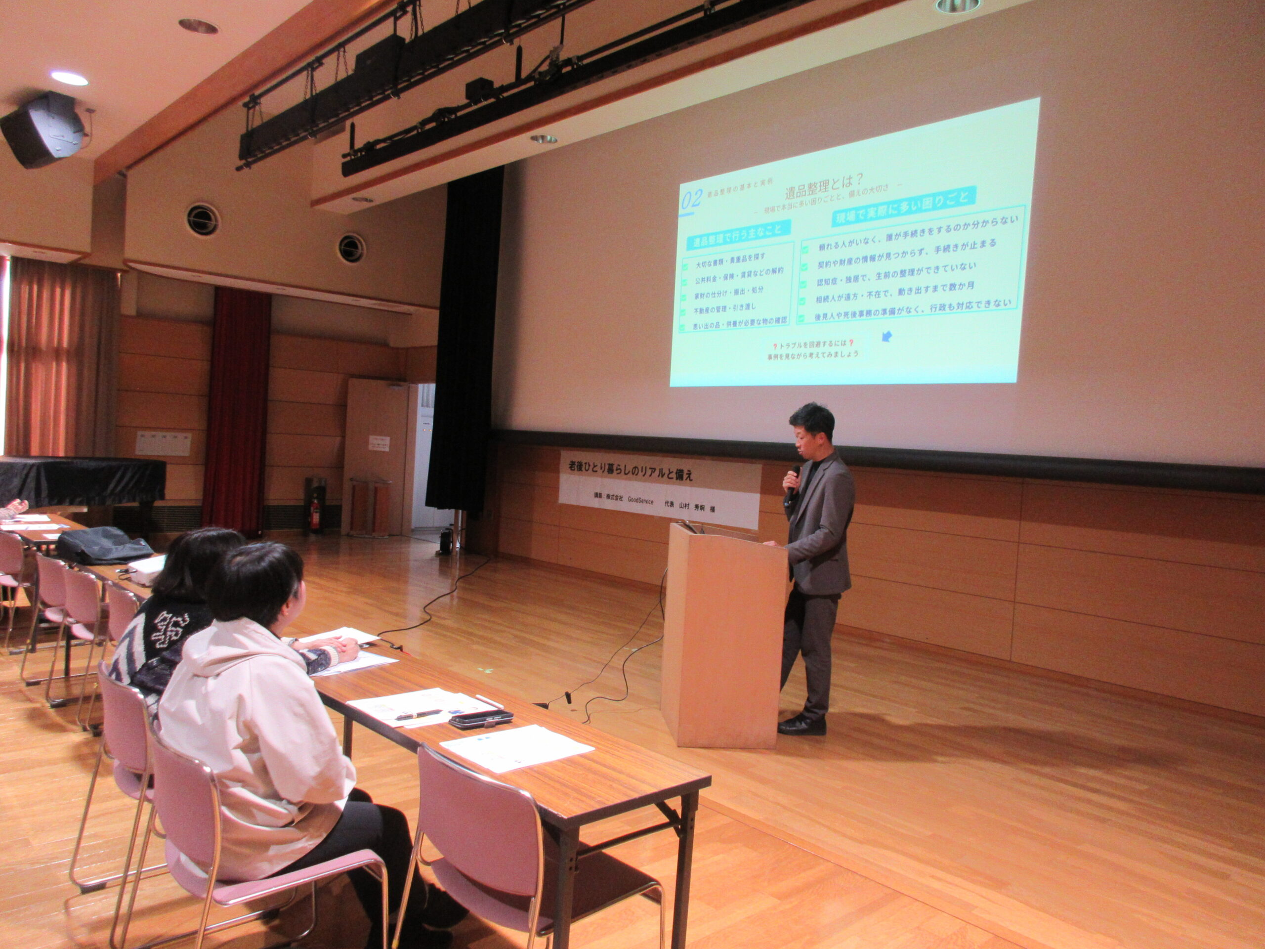 高齢者に関わる職員さんから自分自身の事に関係している高齢者さんなど約40名ほどがご参加いただき、遺品整理や生前整理の事例からおひとり様の気を付けるポイントなどをお話させていただきました。