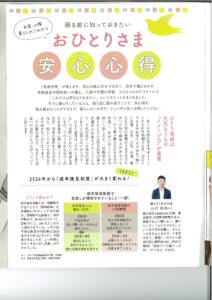 週刊女性2026年1月6日発売の合併号にて「困る前に知っておきたい、おひとり様安心心得」という特別付録という形で文章の監修をさせていただきました。
