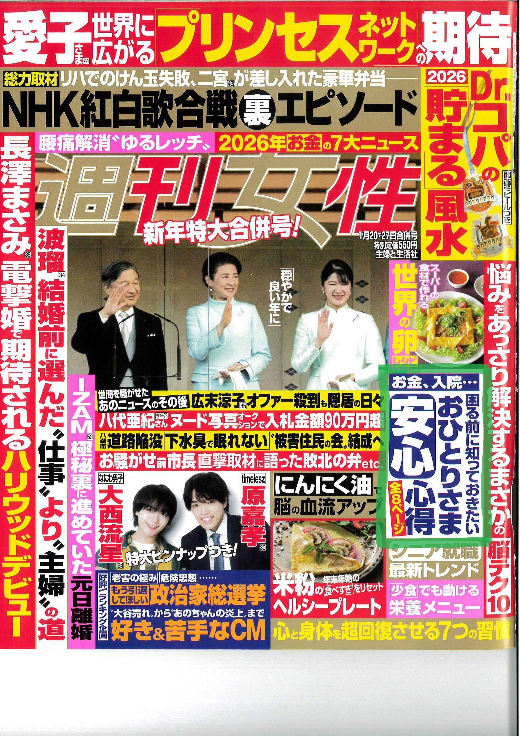 週刊女性2026年1月6日発売の合併号にて「困る前に知っておきたい、おひとり様安心心得」という特別付録という形で文章の監修をさせていただきました。